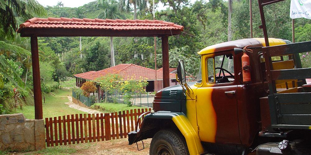 TRINIDAD - PARQUE GUANAYARA / Topes de Collantes - TRINIDAD. Salida hacia Parque Guanayara y Tope de Collantes para una aventura en camiones militares abiertos 4x4. Visita al mirador que desde la montaña recorre toda la costa del Mar Caribe y la ciudad. Llegada a la Casa de la Gallega, atravesando bosques tropicales y cafetales. Cóctel de bienvenida. Recorrido de trekking suave por el sendero ecológico "Centinelas del río melodioso", acompañado de un guía ecoturístico (unos 3 km. es una caminata sin dificultad). Tiempo libre para nadar en las piscinas naturales y ver la cascada "El Rocío". Almuerzo basado en la cocina criolla, con productos locales. Regreso a Trinidad.