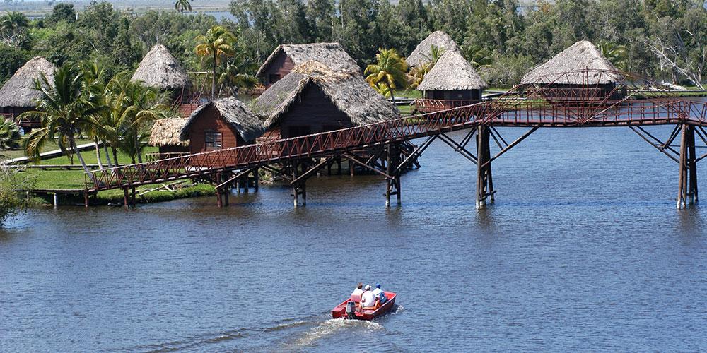 Visita facoltativa a pagamento alla ricostruzione di un tipico villaggio che alle origini di Cuba fù abitato dagli Indios Tainos, costruito su palafitte che si raggiungono dopo una breve navigazione nella laguna oppure a scelta  sosta per bagno alle piscine naturali di Caleta Buena.(entrata a pagamento)